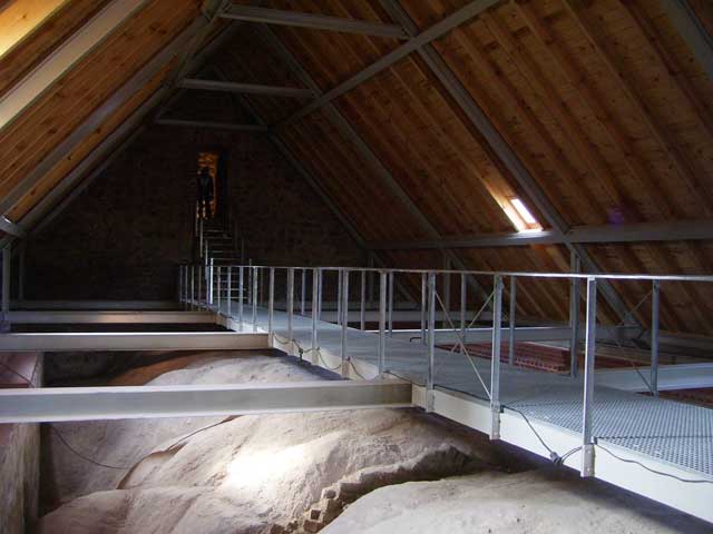 So kann man sich ohne schwindlig zu werden und sich dreckig zu machen, die eindrucksvolle Deckenkonstruktion anschauen.