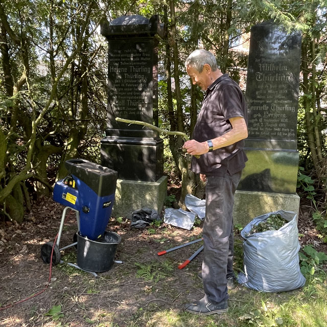 | Dank Familie Freudenberg aus Ahrensfelde und anderer fleißiger Helfer war der Sturmschaden schon nach wenigen Tagen beseitigt und abgesehen vom verbliebenen Rest der Birke sieht der alte Friedhof jetzt schon wieder sehr ordentlich aus.