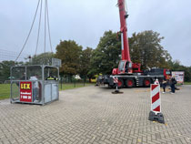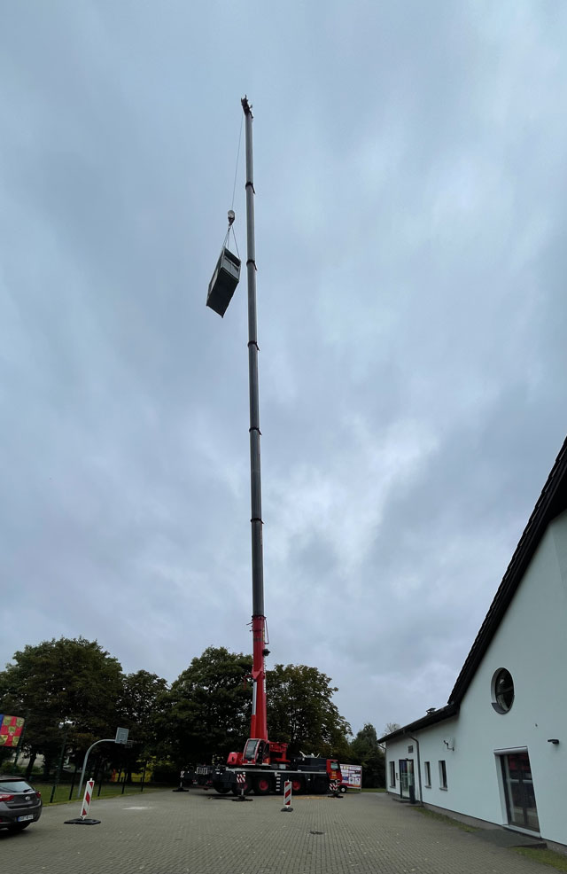 | Leider war das Wetter nicht sehr festlich. Aber die Mehrower verstehen es, auch unter üblen Bedingungen zu feiern. Ein paar ganz Verwegene haben sich sogar trotz Kälte, Wind und Regen getraut, mit dem Lift ganz nach oben zu fahren, um von oben einen Blick auf das Geschehen am Boden zu werfen oder die leider etwas getrübte Aussicht zu genießen. |