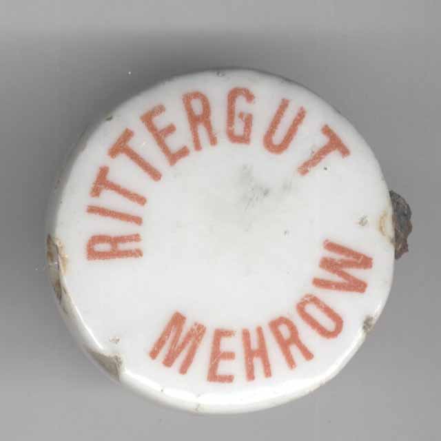| Von Frau Dietrich und Herrn Prötzsch wußten wir, dass die Milch damals überwiegend in Glasflaschen mit einem Porzellandeckel am Klappbügelverschluß abgefüllt wurde. Zu gerne hätten wir solch eine Flasche oder zumindest einen der bedruckten Porzellandeckel gesehen oder gar besessen. Aber wo bekommt man sowas her? Das war exakt der richtige Auftrag an Kurt Berg, der eine Hälfte der ehemaligen Meierei bewohnt. Er erzählte uns, dass er schon mal solche Porzellandeckel auf seinem Grundstück gefunden hat, die dann aber irgendwie wieder verloren gegangen sind. Nun hat er sich den Spaten geschnappt und so lange in seinem Garten herumgebuddelt, bis er erneut auf ein paar dieser Porzellankappen gestoßen ist, die er uns dann stolz überreichte: |