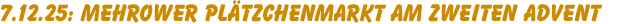 | Im Dezember findet die Kinderrunde ausnahmsweise an einem Sonntag statt und zwar am 2. Advent (7.12.) ab 14 Uhr als Weihnachtsbasteln auf dem Mehrower Plätzchenmarkt. |