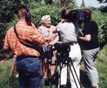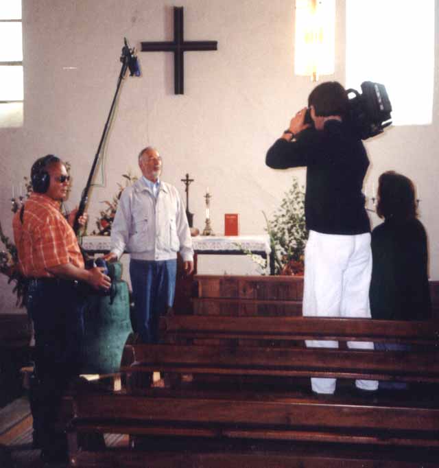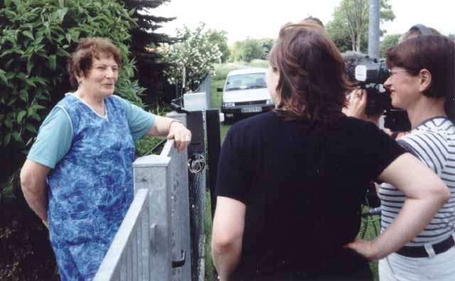 Uns Mehrowern sollte der scheidende ORB besonders an's Herz gewachsen sein, denn ein Team des Senders hat uns am 21. Mai vorigen Jahres bei unseren letzten hektischen Vorbereitungen zur 675-Jahr-Feier begleitet. Am Morgen dieses Tages (an dem sich die erstmalige Erwähnung Mehrows genau zum 675. Male jährte) traf wie angekündigt ein Kleinbus des Senders mit Reporterin, Kamerafrau und Tontechniker ein, um zu beobachten, was sich hier vor dem großen Fest im Dorf regt. Den ersten Blick warf das Team in unseren Fest-"Saal", in dem am Nachmittag nach der Feierstunde mit Festansprache der offizielle Empfand durch Bürgermeister und Amtsdirektor stattfinden sollte und wo gerade noch die Fotoausstellung zur Geschichte des Ortes aufgebaut wurde. Dann ging es zusammen mit den als Requisiten für den Festumzug gefertigten Mehrower Glocken in die Kirche, wo diese als Dekoration für den Festakt dienen sollten. Ein glücklicher Zufall wollte, daß dort Paul Plume, Kirchenältester der evangelischen Kirchengemeinde Ahrensfelde/Mehrow und Ortschronist in Ahrensfelde, gerade dabei war, das Kircheninnere herzurichten. Er hat vor einiger Zeit im Kirchenbuch ausgegraben, wie Mehrow seinerzeit (1828) zu neuen Glocken gelangt ist und konnte dem Fernsehteam gleich sachkundig davon berichten. Danach ging es mit dem Kleinbus quer durch unseren Ort, um ein paar Mehrower bezüglich ihrer Erwartungen an das Fest zu interviewen. Frau Böse aus der Trappenfelder Straße und Frau Lewandowski aus dem Krummenseer Weg waren reichlich überrascht, als das Fernsehen bei ihnen am Gartenzaun stand und schon zu drehen begann, bevor sie sich von ihrem Schreck erholen konnten. Herausgekommen sind zwei völlig ungekünstelte Interviews mit versteckten Liebeserklärungen der Befragten an ihren Heimatort. Ein weiteres "Opfer" des Teams war der Reiterhof Klopsteg, wo man aber bereitwillig die Kutsche aus der Garage holte, mit der schon so manche Festgesellschaft durch Mehrow und Umgebung chauffiert wurde. |