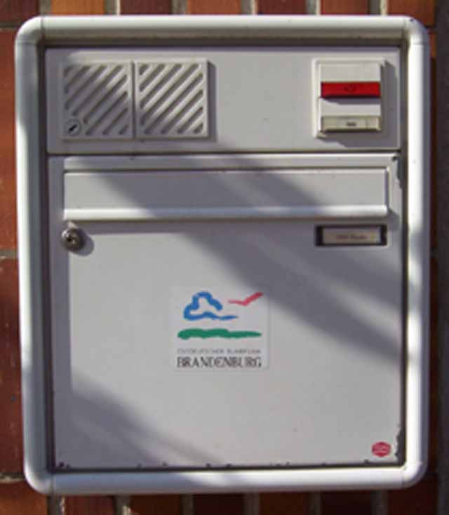 | Die Mitarbeiter der Lokalstudios hatten aber zum Glück in der Nacht vom 30. April zum 1. Mai Besseres zu tun, als die Logos an der Haustür zu überkleben, so daß man zumindest in Prenzlau noch Gelegenheit fand, ein paar Bilder von der wohlvertrauten ORB-Reklame am Haus und Briefkasten des dortigen ORB-Studios zu schießen (siehe oben). |