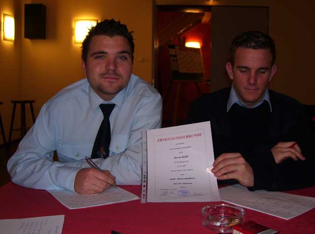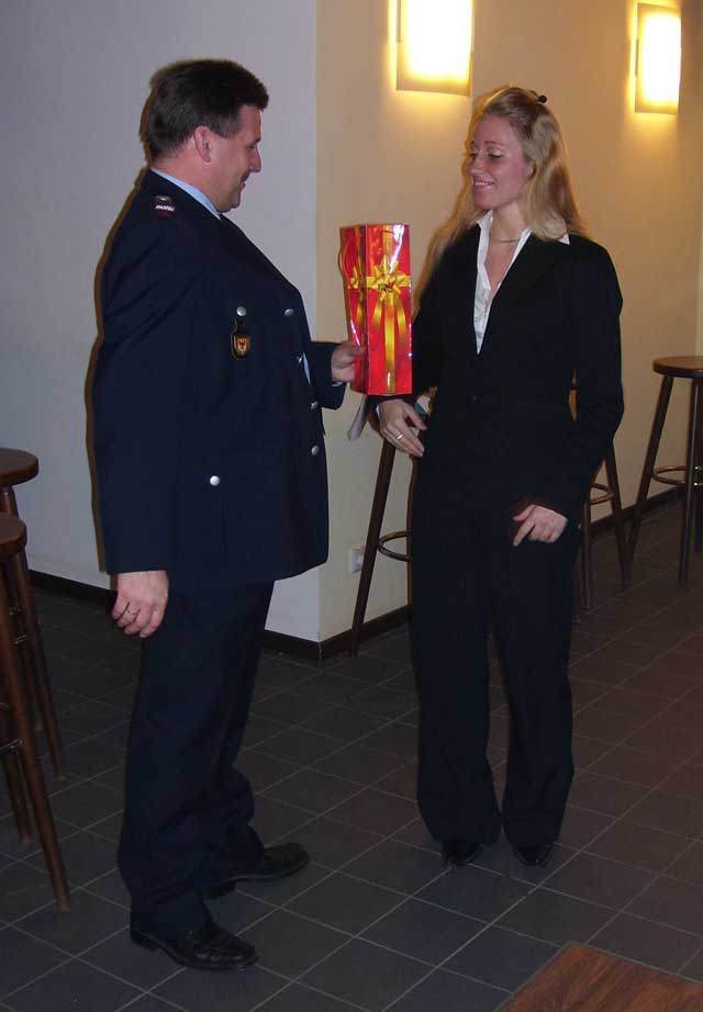 Weil sie wie immer ein so gutes Fotomotiv abgab, war Tina Berg besonders willkommen und als angehende "Frau stellvertretende Wehrführerin" wurde sie extra herzlich begrüßt. Und ausnahmsweise durfte Steven, dem sie diesen Titel zu verdanken hat, mal mit aufs Bild.