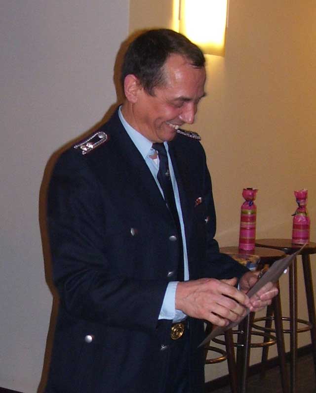 André Reinkober hat in seiner Rede völlig zu Recht den Frauen und Freundinnen der Kameraden Lob und Dank ausgesprochen, denn sie sind ja vor allem die Leidtragenden, wenn die Männer zur Übung oder zum Einsatz 'rausmüssen.