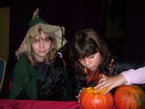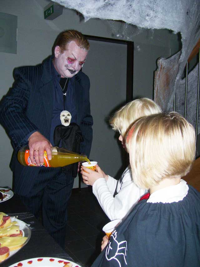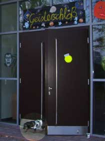 | Aber eigentlich sah es auch gar nicht danach aus, als ob irgendeine der Gruselgestalten vorzeitig das Schloß verlassen wollte - mal abgesehen von ein paar pfiffigen Mädchen, die vor dem Ansturm der Konkurrenz ihre "Süßes - sonst gibt's Saures"-Tour von Haustür zu Haustür machen wollten. Und die haben eine Menge verpasst! |