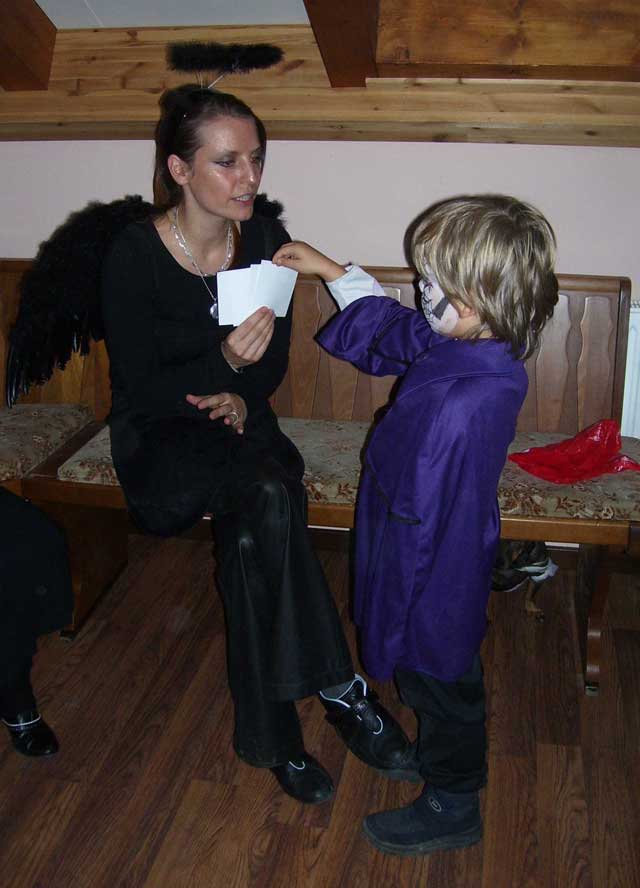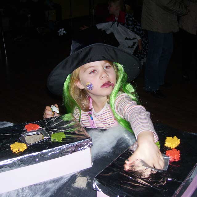 Wenn vor den Kindern nicht noch die Aufgabe gestanden hätte, mit möglichst wenigen Worten und unter Vermeidung von Gedichten und Liedern möglichst viele Einkaufsbeutel von Süßigkeiten zu erbetteln, würden sie bestimmt jetzt noch in der Leseecke hocken und Gruselgeschichten hören. Aber bis zum nächsten Halloween sind es ja jetzt nicht mal mehr 12 Monate. Hexe Spinnebein wartet schon! |