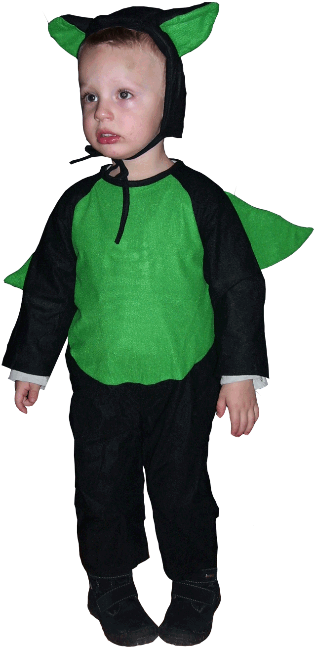 | Ein junger Mann im grün-schwarzen Kostüm, das ihm offenbar Flugfähigkeit verleihen sollte, hat anschaulich demonstriert, was herauskommt, wenn man Batman und Arthur den Engel kreuzt. Und ein bisschen was von Biene Maja hatte das Kostüm auch. |