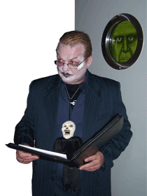 | Und dann sind der Mann, das Buch und die Kinder in einer schummrigen Ecke des Geisterschlosses verschwunden und durch die Ritzen der Tür konnte man hören und durch das Schlüsselloch mit ansehen, wie das Gruseligste vom Gruseligsten aus dem Buch und durch den Mund des Vorlesers an die gespitzten Ohren der Zuhörer gelangte und von dort aus den direkten Weg zu den Haarwurzeln nahm, um die Haare in senkrechte Position zu bringen.