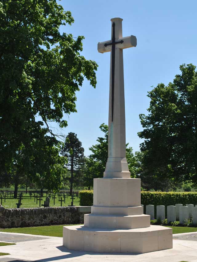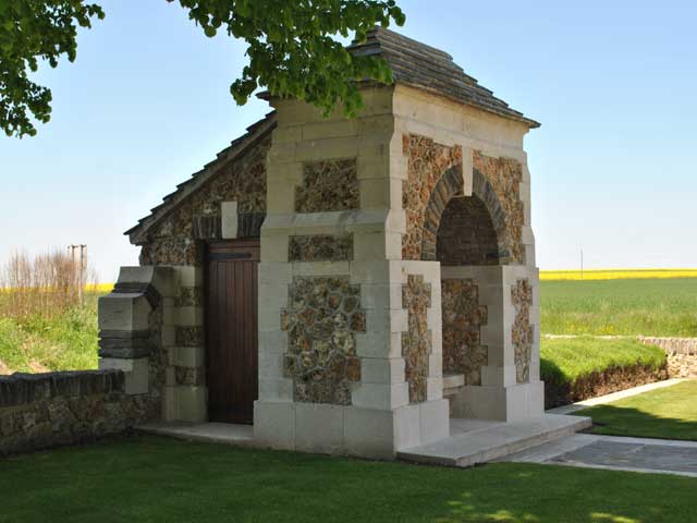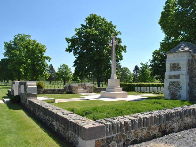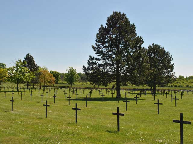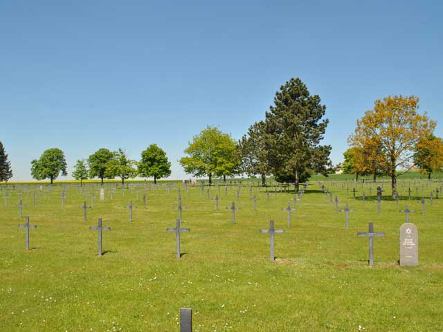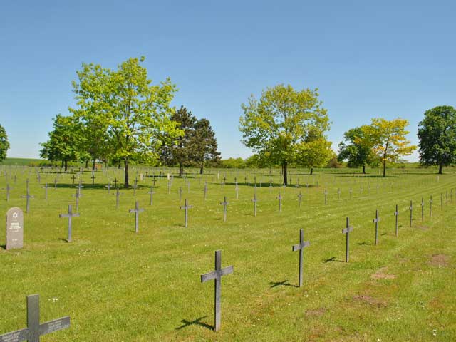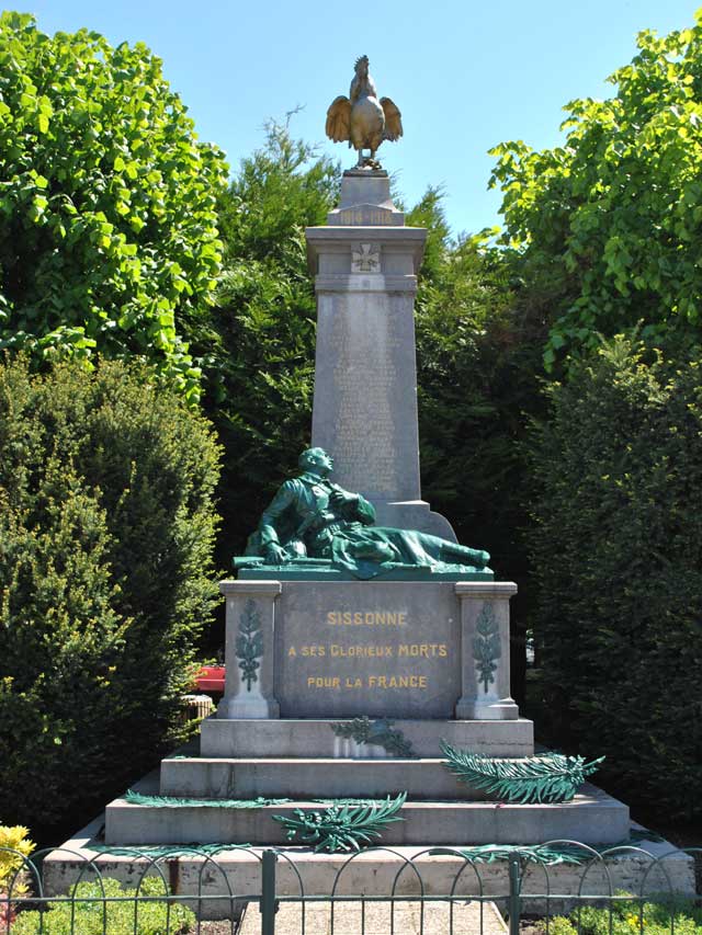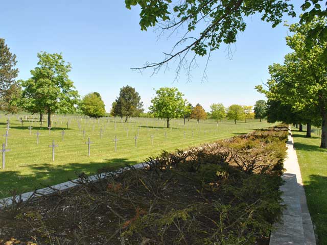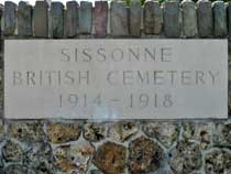 | Ein solcher Friedhof befindet sich in Sissonne, einem 2000-Seelen-Dorf im gleichnamigen Kanton im Arrondissement Laon (Département Aisne, Region Picardie). Der Ort liegt östlich der Autobahn A26, die St. Quentin und Reims verbindet, und ist von Feldern umgeben. |