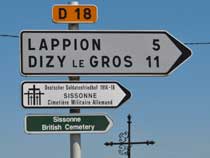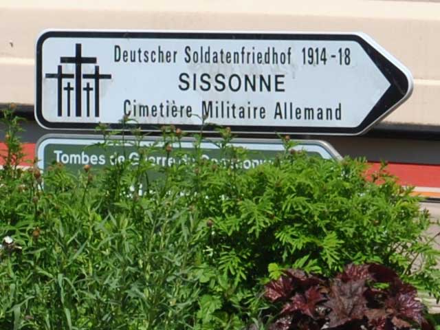 Ein paar Ecken weiter findet sich dann auch schon der erste Wegweiser zum Deutschen Soldatenfriedhof bei Sissonne.