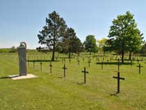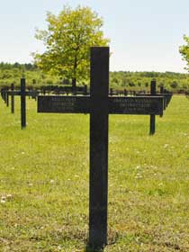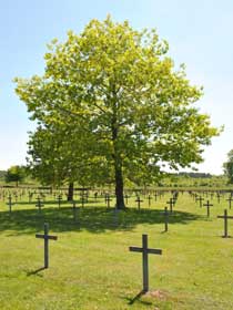 | Beeindruckt von der Größe des Friedhofs und seinem hervorragenden Pflegezustand geht es weiter - auf die andere Seite der A26, wo wir jenseits des „Chemin des Dames“ auf dem Friedhof in Soupir das Grab von Willy Maskiewitz aus Ahrensfelde aufsuchen wollen. |
