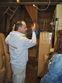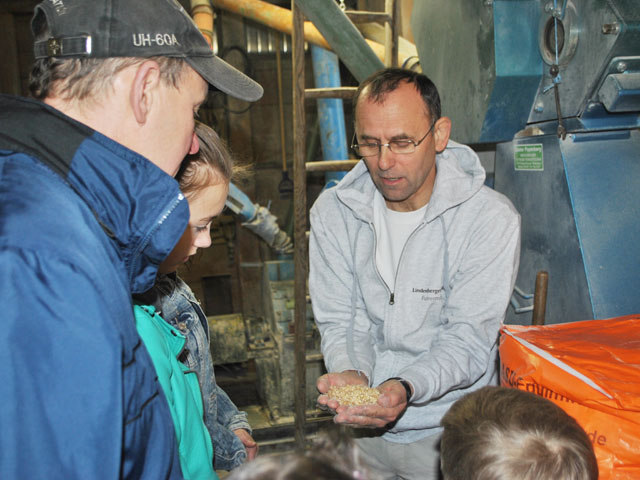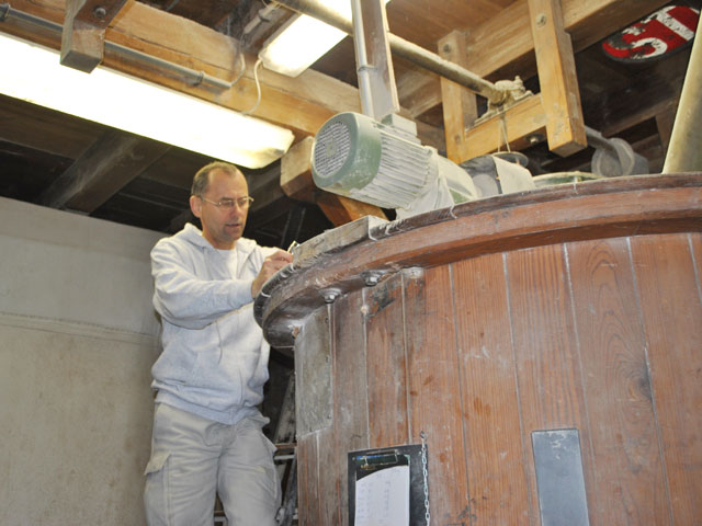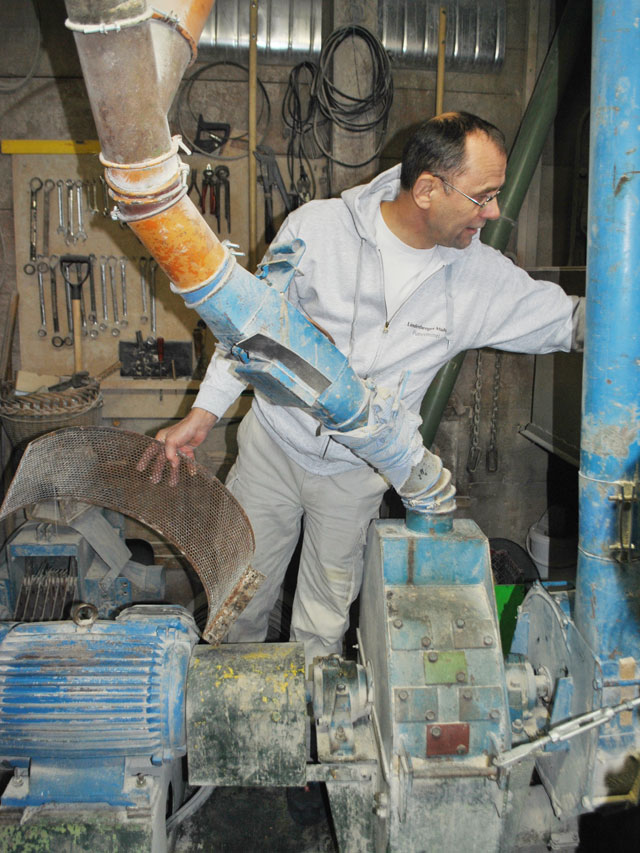 | Seit er Bürgermeister ist, ruht für ihn die Müllerei, aber verlernt und vergessen hat er offenbar noch nichts. Jedes Hebelchen an den vielen, teils schon historisch anmutenden Maschinen weiß er zu erklären und für jedes Korn, das in irgendeinen Trichter geworfen wird, kann er vorhersagen, wo es in welchem Zustand wieder rauskommen wird. |