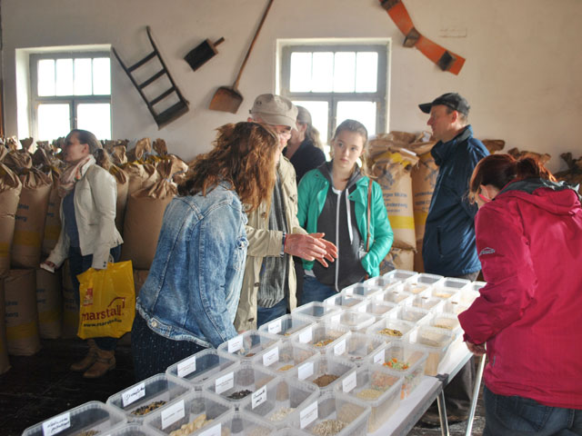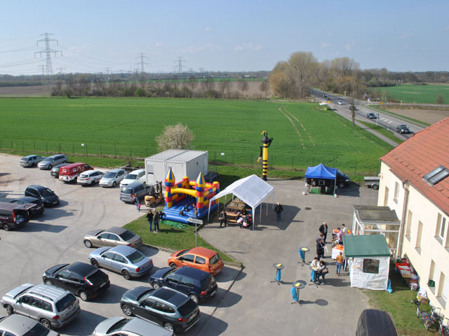 | Frau und Kinder (oder Enkel) kann man übrigens zum Tag der offenen Tür gern mitbringen. Die können hüpfen, Hasen füttern oder Bratwurst essen, währen der Papa Treibriemen inspiziert oder den Weg eines Korns bis in den Futtersack gedanklich nachvollzieht.. |