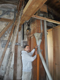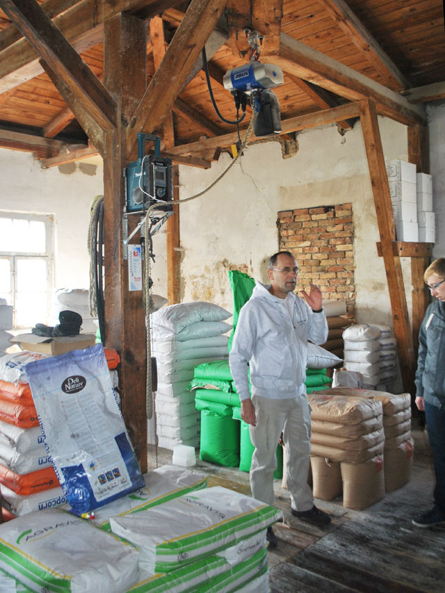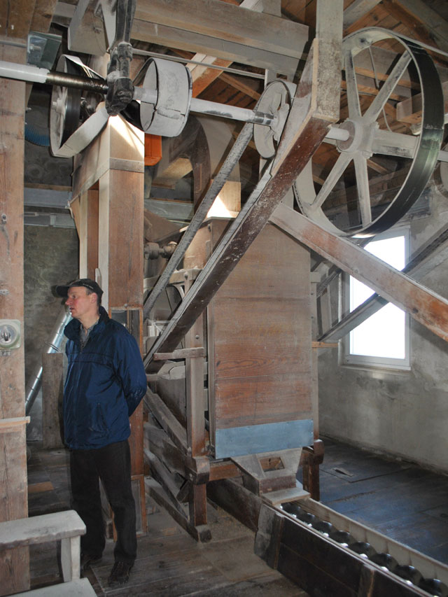 | Wilfried Gehrke, dessen Familie die Mühle gehört, ist zwar kein Müller, sondern studierter Landwirt, hat hier aber früher im wahrsten Sinne des Wortes kräftig mitgemischt. | ![]() |