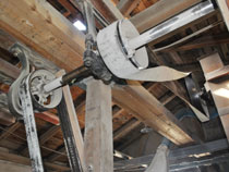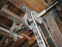 Der Weg führte unters Dach, wo sich das „Kraftwerk“ und die „Antriebszentrale“ der Lindenberger Mühle befindet. |