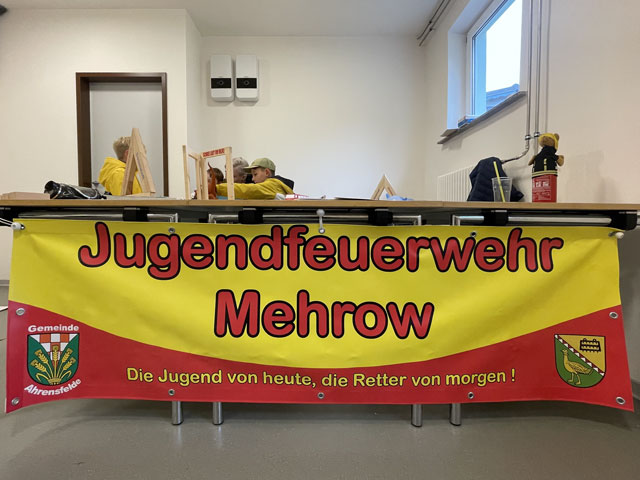 samstags von 10 bis 11.30 Uhr im Mehrower Feuerwehrgebäude. Am 20. September traf sich die Kinderrunde zur „Drachenwerkstatt“ und am 11. Oktober: wurde unter dem Motto Sandbilder mit buntem Sand gebastelt. Bei der nächsten Kinderrunde am 8. November 2025 können die Kinder ihre eigenen Kerzen gießen. Im Dezember findet die Kinderrunde ausnahmsweise an einem Sonntag statt und zwar am 2. Advent (7. Dezember) ab 14 Uhr als Weihnachtsbasteln auf dem Mehrower Plätzchenmarkt. |