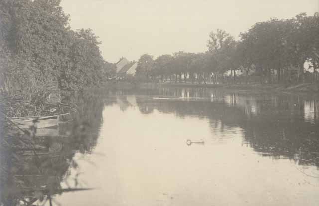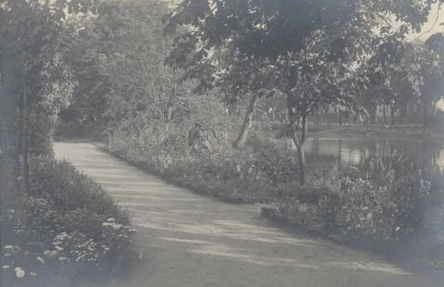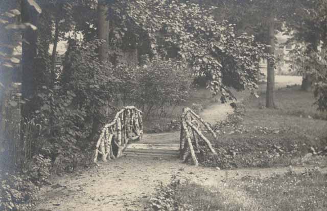 Die folgenden Bilder zeigen Partien aus dem Dorfpark, der damals fast die ganze Fläche zwischen Dorfteich, Krummenseer Weg, Trappenfelder Straße und der jetzigen Robert-Stock-Straße ausfüllte. Das Bild links zeigt den Weg hinter dem Dorfteich, etwa dort wo jetzt die unansehnlichen Garagen stehen. Wo das Bild rechts aufgenommen wurde, ist nicht ganz sicher. Da im Hintergrund Häuser zu erahnen sind, dürfte es aber ebenfalls im Dorfkern entstanden sein, vermutlich auch in der Nähe des Dorfteiches. |