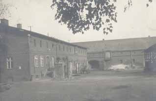 Im Hintergrund steht noch die Scheune, die seinerzeit den Gutshof nach Süden begrenzte und in der sich u.a. die gutsherrschaftliche Garage und die Gutsschmiede befand. Diese Scheune wurde später teilweise zum Wohnhaus (Dorfstrasse 12) umfunktioniert, musste aber Anfang der 90er Jahre wegen fortgeschrittenem Befall mit Hausschwamm (Merulius Domesticus) abgerissen werden. Heute stehen dort Mehrfamilienhäuser. |