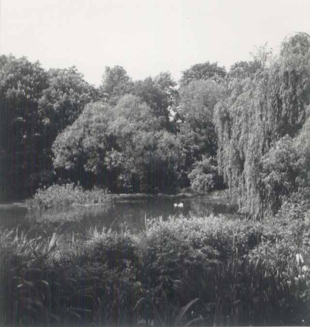 | In der Bilderkiste unserer letzten Gutsbesitzerin (Anna Bothe) sind wir auch auf ein kleines Häufchen fein säuberlich mit Ort, Datum, Uhrzeit, Wetterlage, Belichtungs- und Filmdaten beschriftete Bilder gestoßen, die sie aus dem Fenster oder bei Spaziergängen durch den Dorfpark aufgenommen hat. Diese Ende Mai 1936 aufgenommenen Bilder lassen erahnen, wie schön es mal rings um den Dorfteich aussah. Wir wollen sie hier ohne großen Kommentar mit den von Frau Bothe gewählten Titeln zeigen: |