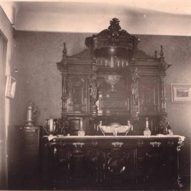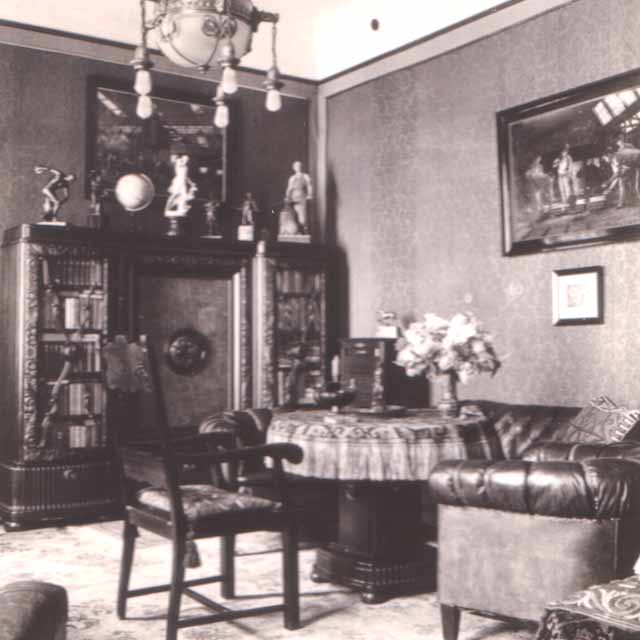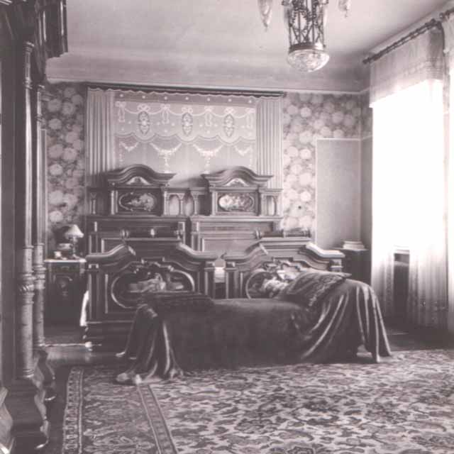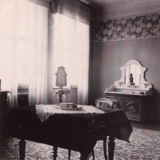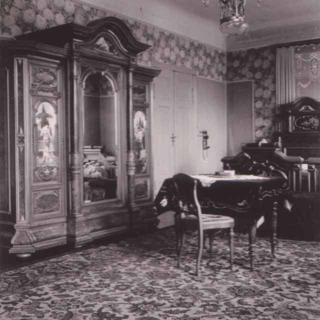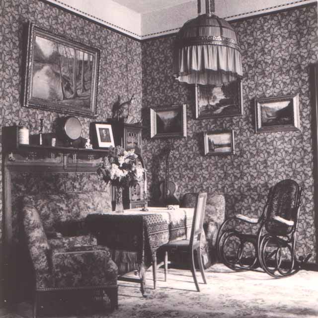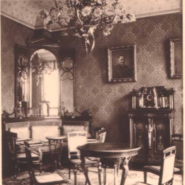 Leider sind die Bilder ohne Datumsangabe - die Aufnahmen wurden irgendwann in den 20er oder 30er Jahren gemacht, möglicherweise oder gar wahrscheinlich auch nicht alle zur gleichen Zeit, da sich bestimmte Möbelstücke offenbar in verschiedenen Räumen wiederfinden. Welches Bild welchen Raum im Haus zeigt, haben wir noch nicht überall ermitteln können - dazu werden wir noch ein paar alte Mehrower befragen müssen.