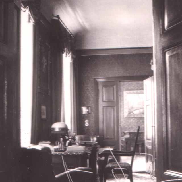 Das Arbeitszimmer wird wohl dort gewesen sein, wo sich jetzt im Obergeschoß der vordere Raum unserer Bibliothek befindet.