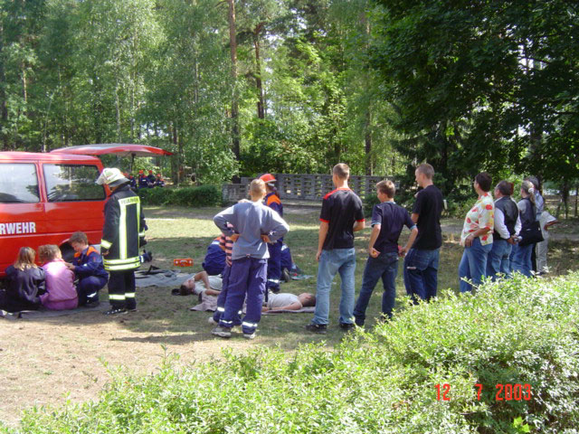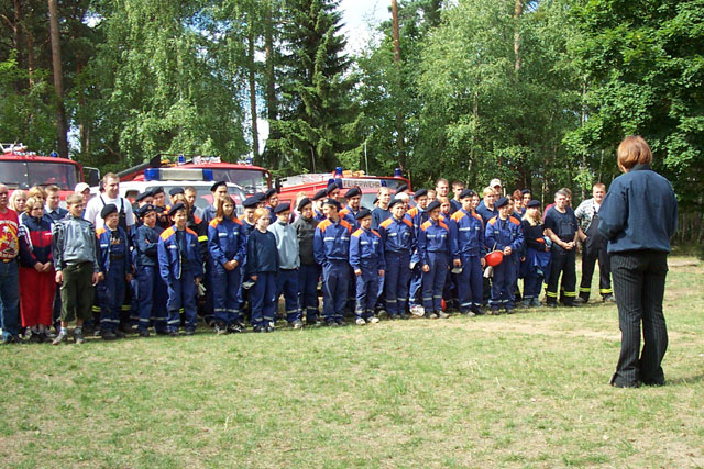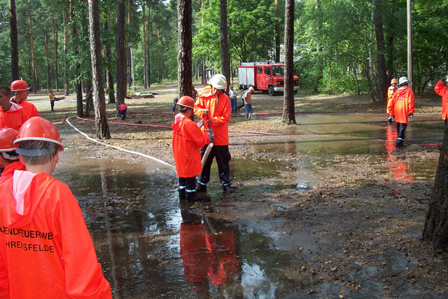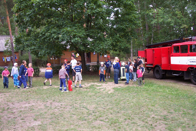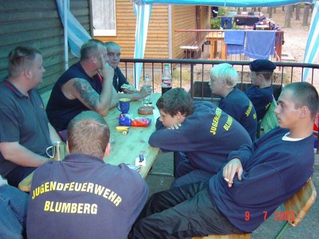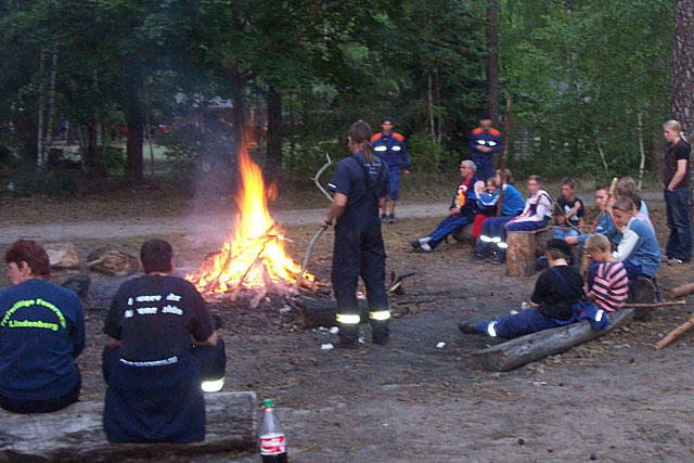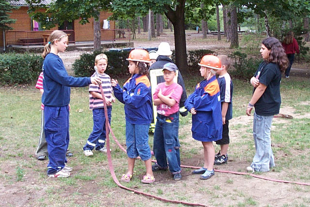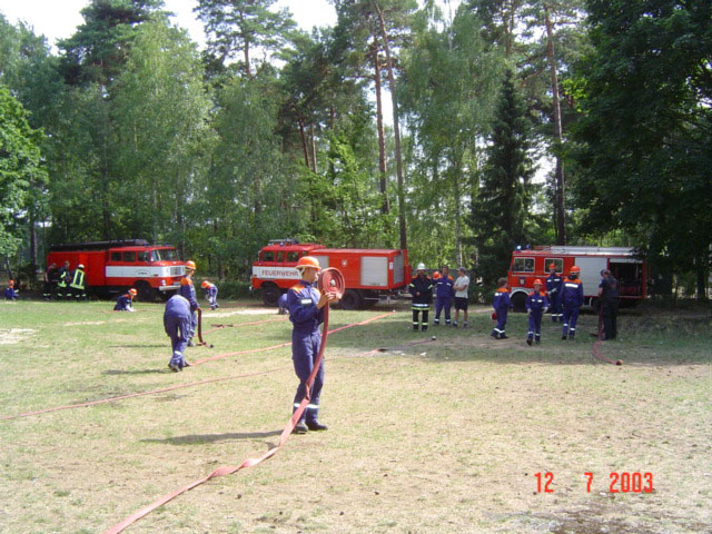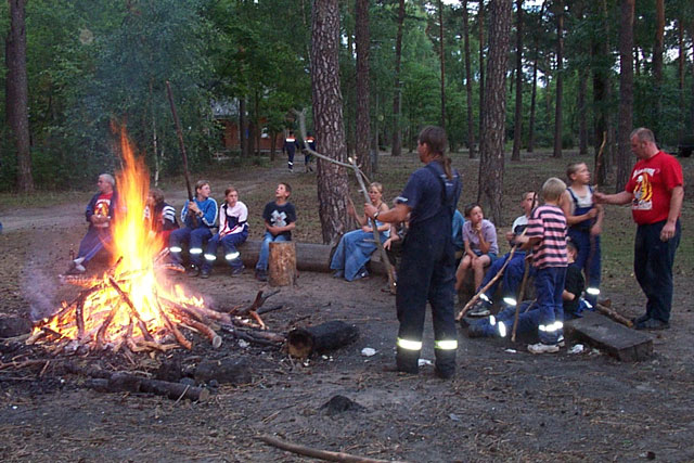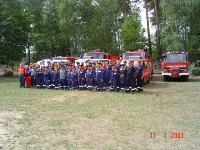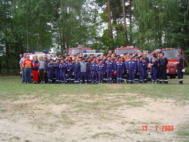 Die Jugendfeuerwehren des Amtes Ahrensfelde/Blumberg im August 2003 im Jugendlager am Frauensee.