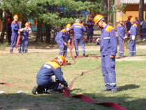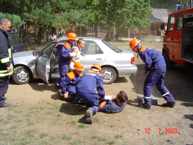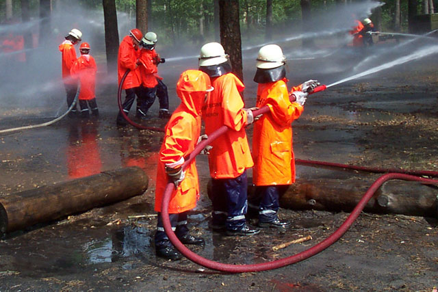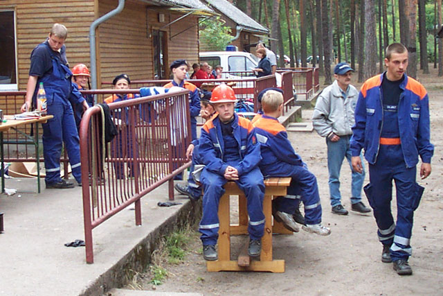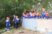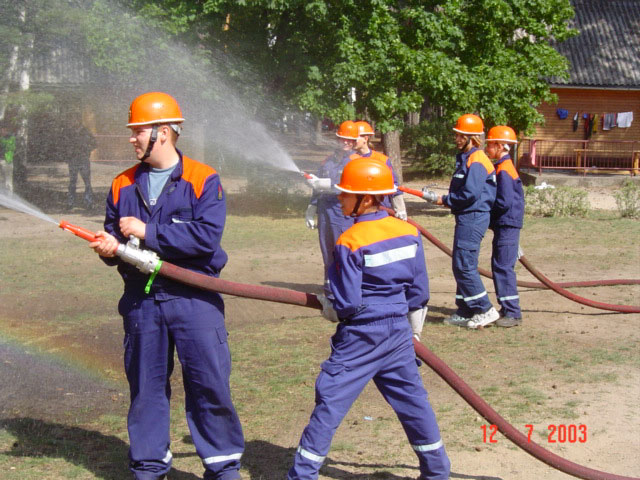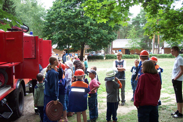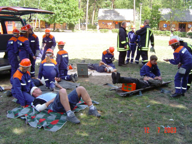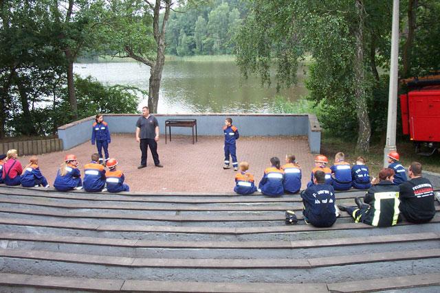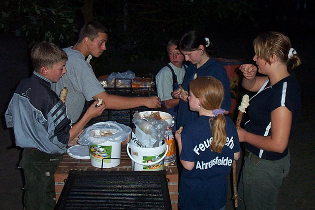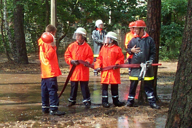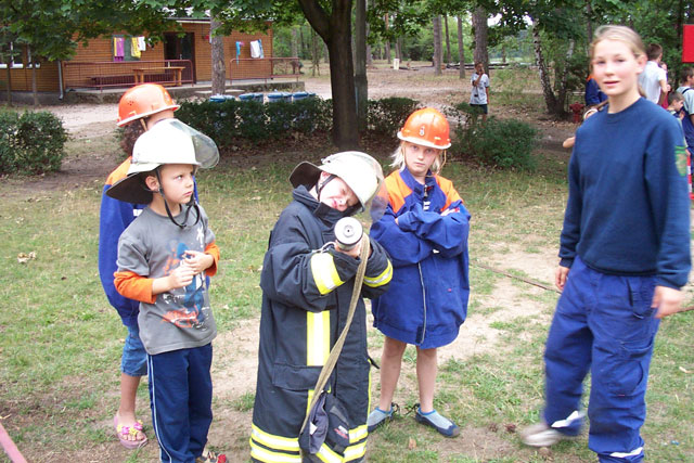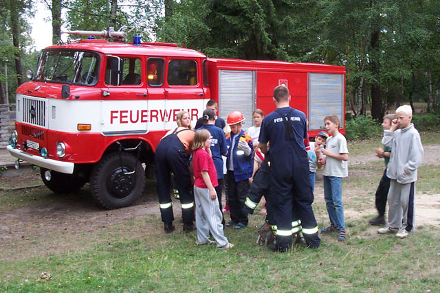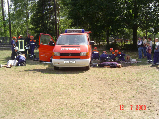 Die Jugendfeuerwehren des Amtes Ahrensfelde/Blumberg im August 2003 im Jugendlager am Frauensee.
