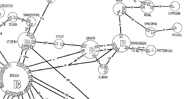 | Ein paar interessante Details aus einem Flugplan der Deutschen Lufthansa von 1929 einschließlich Streckennetz haben wir auf einer Webseite von P.M.Chuang gefunden. Daraus lassen sich folgende Flugverbindungen der Deutschen Lufthansa über unser Gebiet hinweg ablesen. Berlin - Stettin (Ausschnitt rechts): 9.50 Uhr Berlin >>> 10.50 Uhr Stettin 12.20 Uhr Berlin >>> 13.20 Uhr Stettin 13.15 Uhr Stettin >>> 14.15 Uhr Berlin 16.50 Uhr Stettin >>> 17.50 Uhr Berlin Berlin - Danzig 9.00 Uhr Danzig >>> 12.00 Uhr Berlin 14.15 Uhr Berlin >>> 17.15 Uhr Danzig Berlin - Königsberg 17.30 Uhr Königsberg >>> 22.00 Uhr Berlin (über Danzig) 23.00 Uhr Berlin >>> 3.45 Uhr Königsberg  |