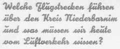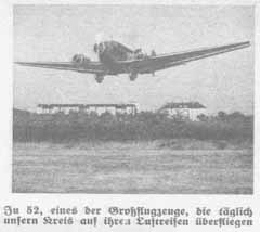 Doch nicht nur die von Berlin abgehenden Flugzeuge, sondern auch diejenigen, die aus dem Ausland oder aus anderen deutschen Städten hier ankommen, berühren unseren Kreis, so daß täglich etwa 15 Flugzeuge bei uns vorüberfliegen. ... |