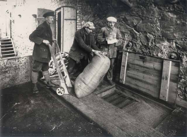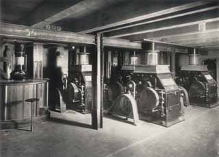 | Eine detailierte Beschreibung der Produktionsbläufe in der Mühle haben wir noch nicht gefunden. Aber aus der Besichtigung und den Erzählungen von Kurt Berg, der in den 70er Jahren Techniker in der Mühle war, können wir uns zusammen reimen, was die Bilder zeigen und welchen Weg das Getreide und das daraus gemischte Futter bzw. das gewonnene Mehl durch die Mühle nahmen. |