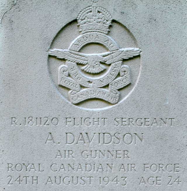 Crashed at Mahlsdorf, 12 km ESE of Berlin, where six are buried in the city's 1939-45 War Cemetery. Sgt Munro has no known grave. |