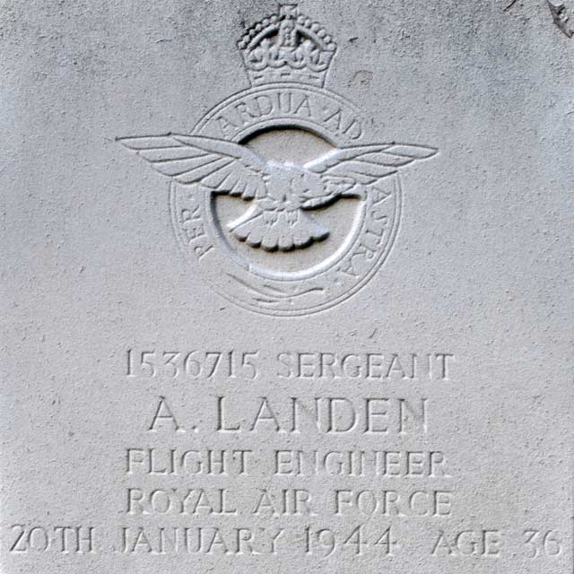 Airborne 1635 20Jan44 from Pocklington. Hit by Flak at 19,500 feet over the target and on completing its bombing attack was intercepted by a night-fighter. Abandoned and crashed at Ahrensfelde, 13 km NE from the centre of Berlin, where those killed are buried in the Berlin 1939-45 War Cemetery. P/O A.W.Dean was confined in Hospital due injuries. No PoW No. Sgt S.R.Stone was interned in Camps L6/357, PoW No.1082 with Sgt A.Whittle, PoW No.867. Sgt J.H.L.Towler in Camp 4B, PoW No.270092. Sgt D.S.Veale in Camps 4B/L3, PoW No.270094. |