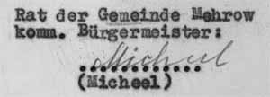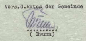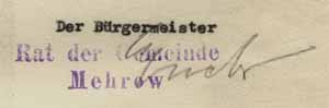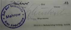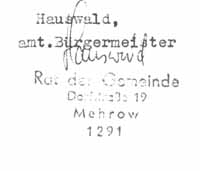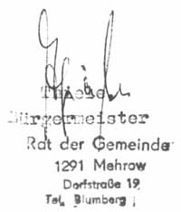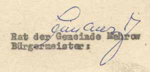 | Julius Metzkow Bürgermeister Anfang 1951 gewählt am 30.1.1951, erwähnt auf Dokument vom 13.3.1951 |