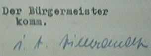 Heinz Wegener Kommissarischer Bürgermeister um 1953 Unterschrift gefunden auf Dokumenten vom 15.1.-16.3.1953 |