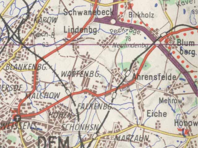Der erste Teilabschnitt der Reichsautobahn Berlin-Stettin, die Teilstrecke von Berlin nach Joachimsthal, wurde am Sonnabend nachmittag durch Ministerpräsident Hermann Göring feierlich dem Verkehr übergeben. ... ... Es war ein Ereignis für Berlin und den Gau Kurmark, er an diesem Tage seine erste Autobahn aus der Taufe hob. Beim Eintreffen des Ministerpräsidenten, in dessen Begleitung sich Staatssekretär Körner, Ministerialrat Gritzbach und der Generalinspektor für das deutsche Straßenwesen, Dr. Todt, befanden, kam ihm an der Sperre hinter Schwanebeck, am sogenannten Stettiner Dreieck, der Gauleiter der Kurmark, Oberpräsident Staatsrat Wilhelm Kube, zur Begrüßung entgegen. ... Die Eröffnung der Teilstrecke Schwanebeck-Joachimsthal der Reichsautobahn Stettin-Berlin am Sonnabend war gerade für unseren Heimatkreis Niederbarnim ein besonderes Ereignis; liegen doch etwa 20 Kilometer dieser 45 Kilometer betragenden Teilstrecke innerhalb unseres Kreises, wozu nach Fertigstellung der Gesamtstrecke von Berlin ab noch zwei Kilometer bis Schwanebeck hinzukommen, die auch bereits einigermaßen befahren werden konnten. Kein Wunder, wenn daher die Kreisbehörde, die Kreisparteileitung, die örtlichen Amts- und Parteidienststellen und die Kreisbevölkerung der durchzogenen Gegend an dem Eröffnungsakt und der Eröffnungsfahrt, die sich bei sonnigem Frühlingswetter abgespielt haben, regen Anteil nahmen. ... |