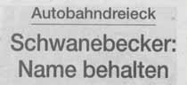 Die Schwanebecker, neben deren Dorf das bestimmt ansonsten nicht sonderlich geliebte Autobahndreieck liegt, bestehen natürlich darauf, dass dieses den Namen "Dreieck Schwanebeck" behält, so wie sich die Leute in Gibraltar gegen die Umbenennung der "Straße von Gibraltar" wehren würden. |
