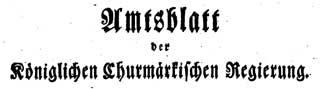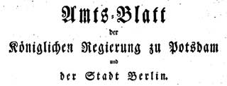 Hier wollen wir zunächst die Amtsblätter der Potsdamer Regierung, die ab 1811 erschienen sind, betrachten. Die enthalten zwar nicht viel Ortsspezifisches, aber die darin abgedruckte Verordnungen geben ein interessantes Bild, durch welche Regeln und Reglementierungen seinerzeit das öffentliche Leben in unserer Gegend geprägt war. Erfreulicherweise finden sich viele dieser Amtsblätter im Internet, so dass man diese in Ruhe zu Hause oder in der S-Bahn auswerten kann und nicht viele Tage in Bibliotheken und Archiven rumsitzen muss, um staubige Exemplare zu durchforsten. Jahrgänge, die nicht bei Google verfügbar sind, haben wir im Landesarchiv Berlin recherchiert, wo Druckexemplare (vermutlich aller Jahrgänge) vorliegen. Deren Jahreszahlen sind nachfolgend nicht fett dargestellt. |