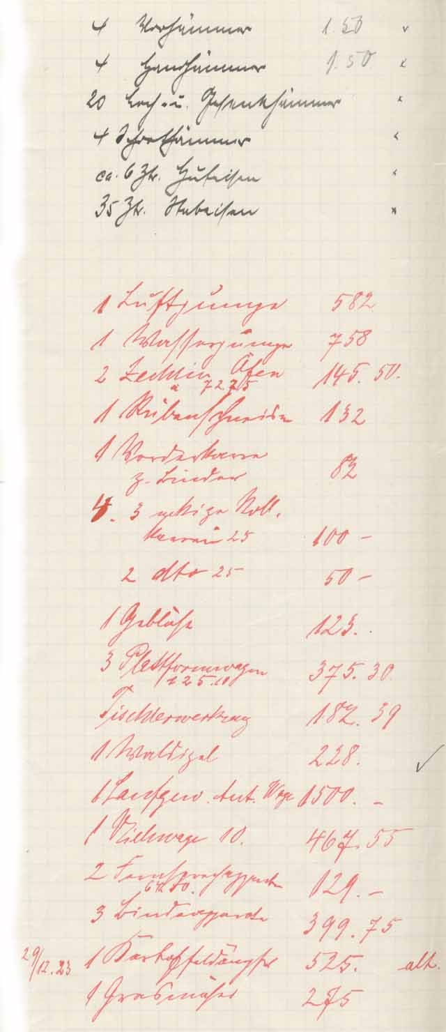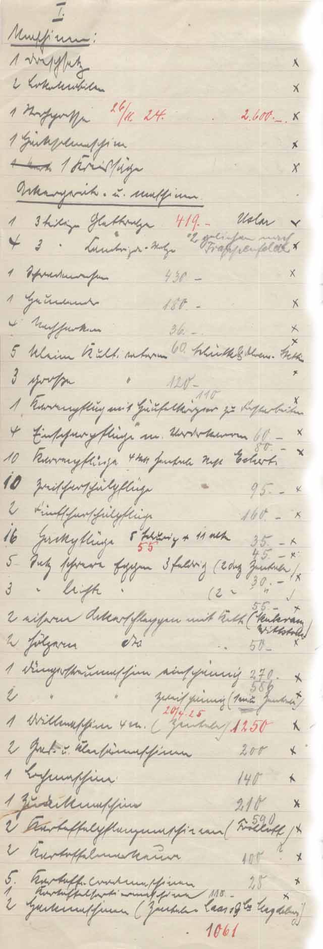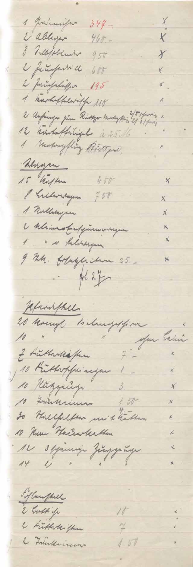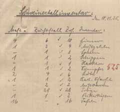| Im Nachlaß von Frau Bothe, unserer letzten Rittergutsbesitzerin haben wir in einem Ordner "Abschluß 1925" folgende Inventarverzeichnisse vom November 1925 gefunden: |