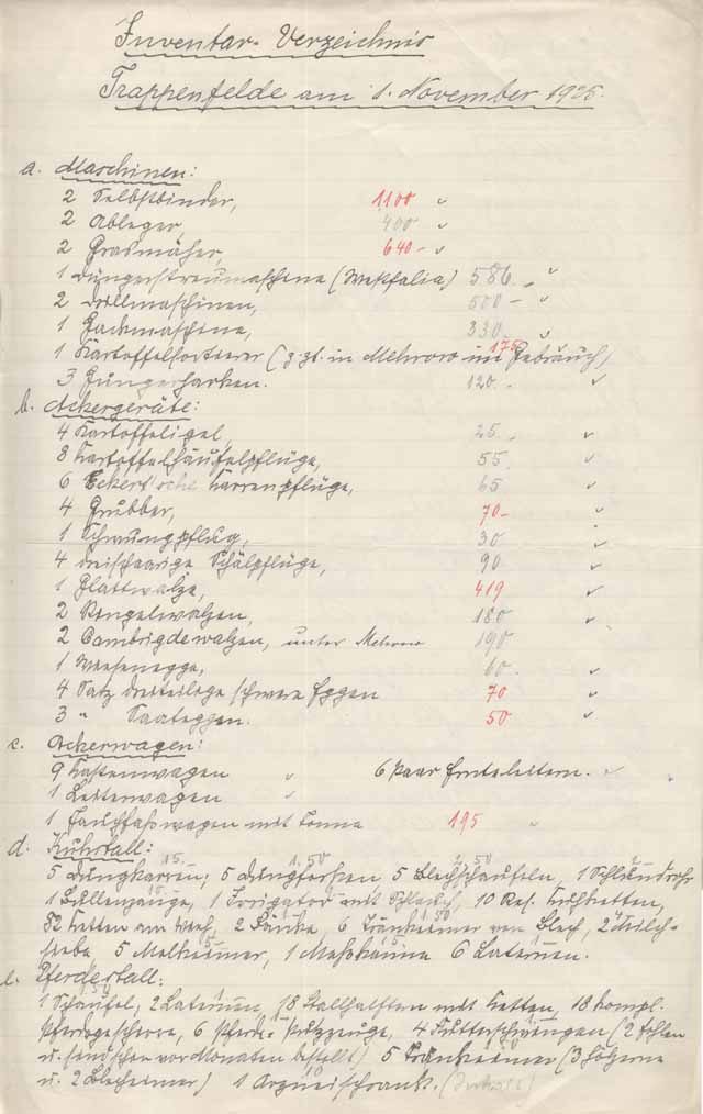 Trappenfelde am 1. November 1925 a) Maschinen |