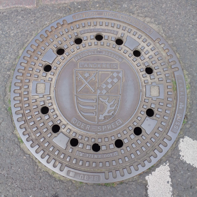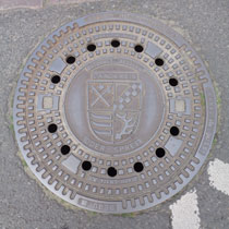Wenn man aufmerksam durch die Stadt läuft, kann man übrigens einige Kanaldeckel mit dem Wappen des Landkreises entdecken - leider nicht in Farbe ...