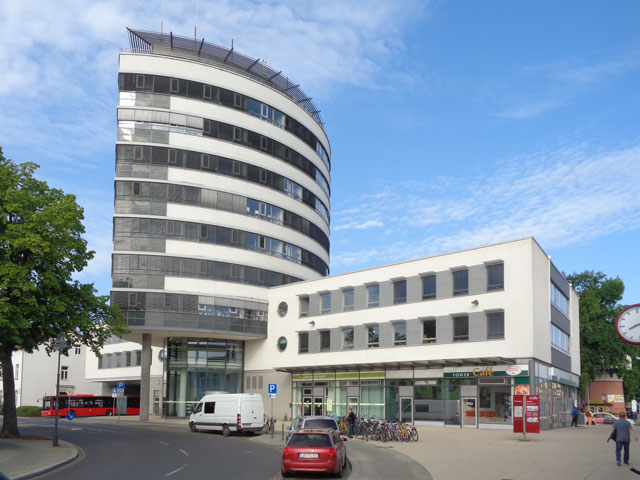Der Anblick des Fürstenwalder Bahnhofsviertels ist schon vertraut. Da sind der Wasserturm mit dem Imbiss, das markante Bürohochhaus und ein paar Geschäfte. |