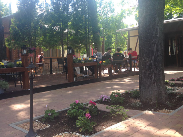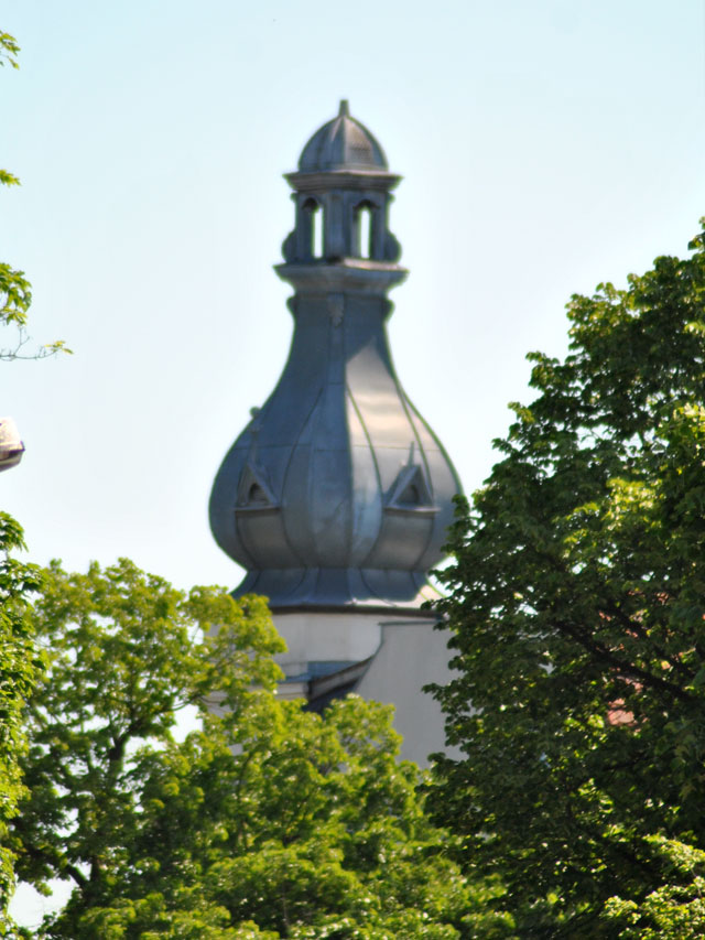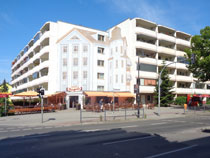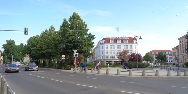 | Auf dem Weg ins Stadtzentrum kommt man unweigerlich am „Stern“ vorbei, einst Start und Ziel mittelalterlicher Handelswege, jetzt eine Kreuzung mehrerer, mitunter stark befahrener Straßen. Mittendrin liegt vor dem schmucken Hotel Kaiserhof eine kleine Parkanlage. |