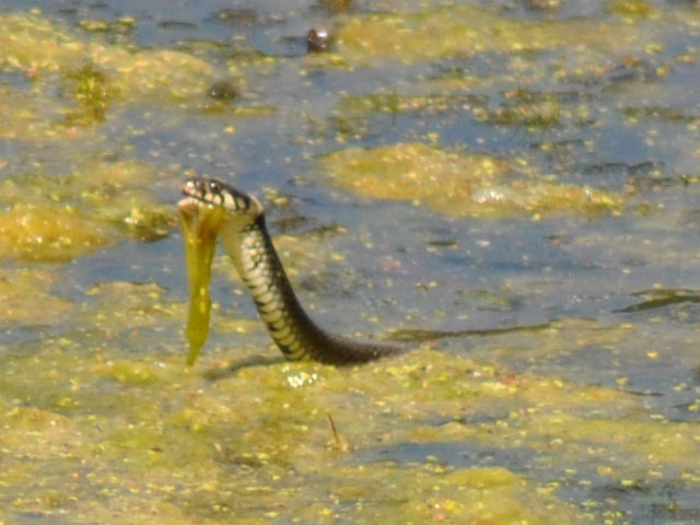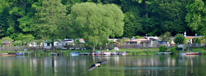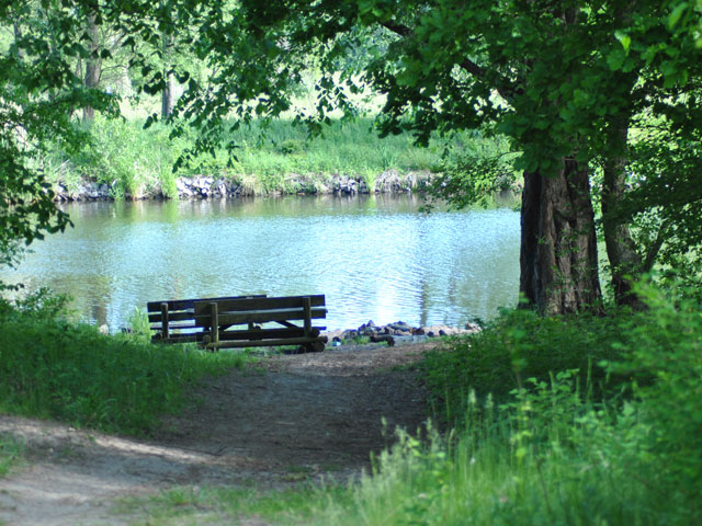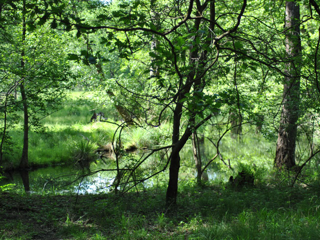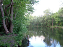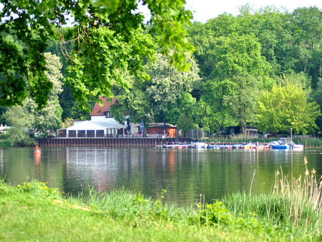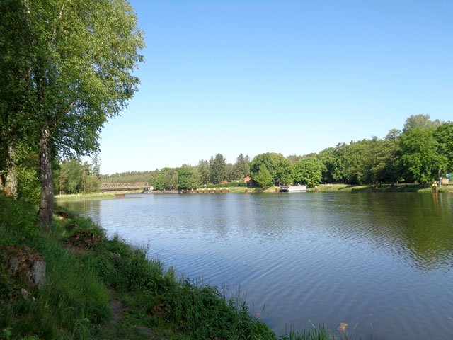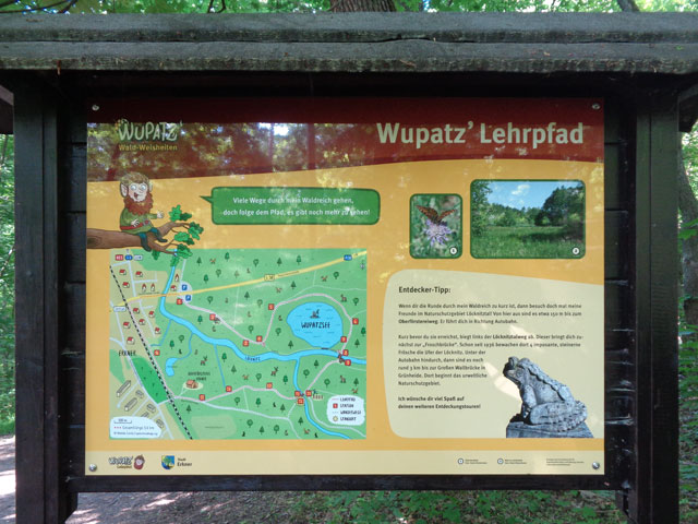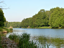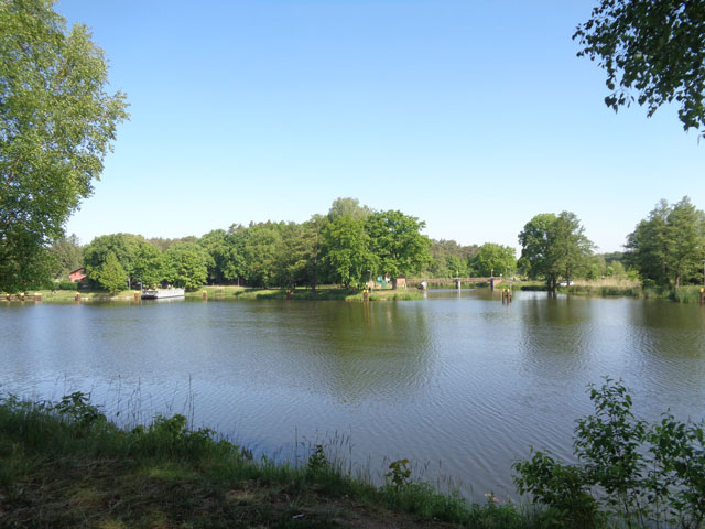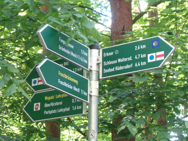 Damit der Pilger vor dem Etappenziel noch ein paar schöne Eindrücke sammeln kann, zweigt der Jakobsweg rechts ab und führt auf dem Leistikowweg um den Wupatzsee herum. |