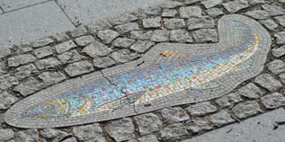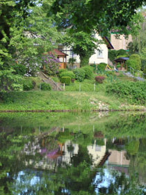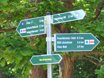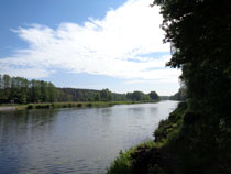 | Ab der Altstadtbrücke geht es auf oft recht schmalen Pfaden ziemlich dicht am Wasser stromabwärts, was viele schöne Blicke auf das Wasser und das andere Ufer gewährt. | ![]() |