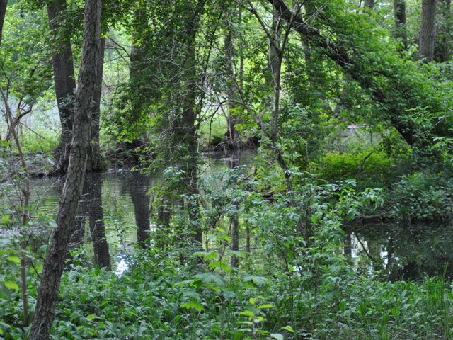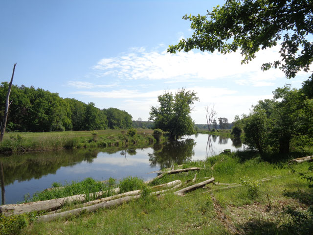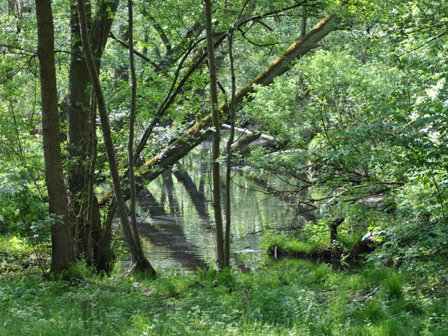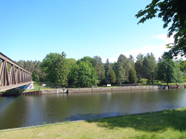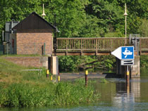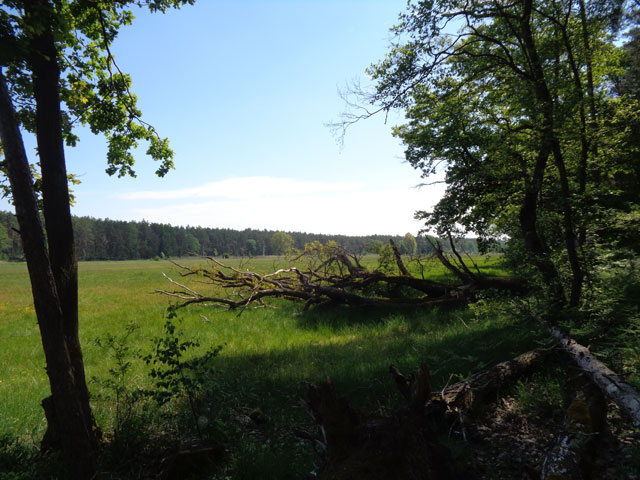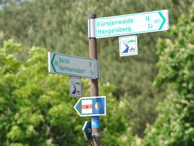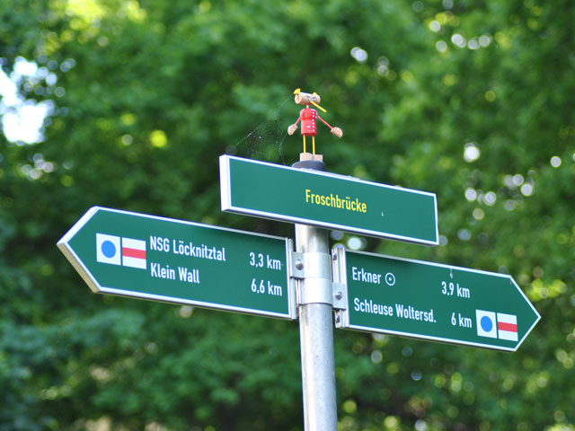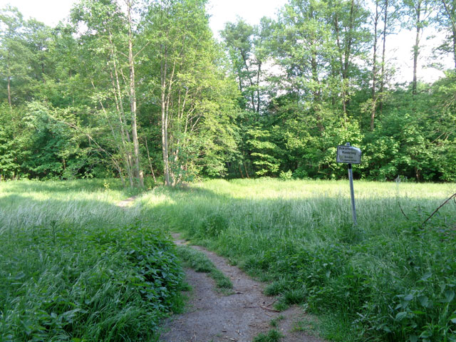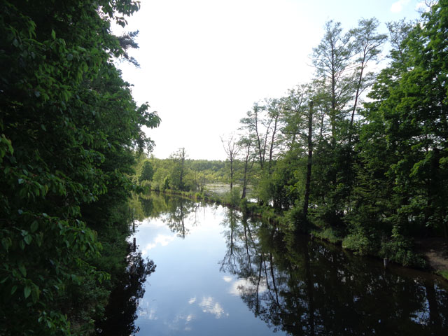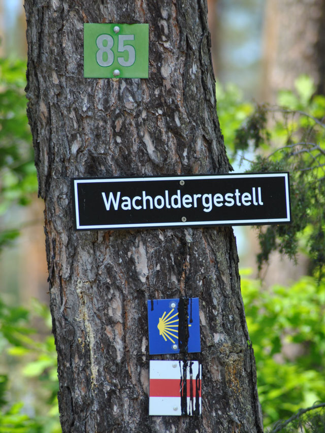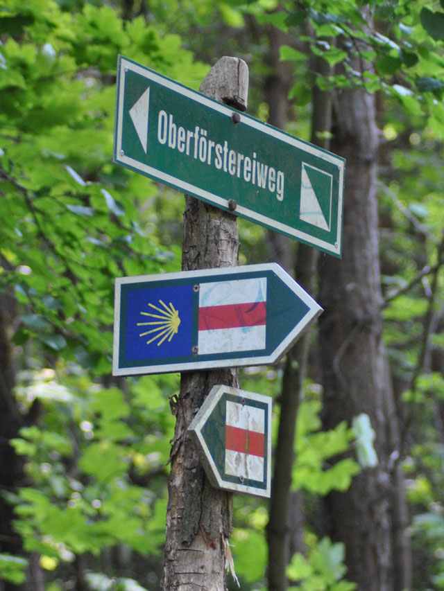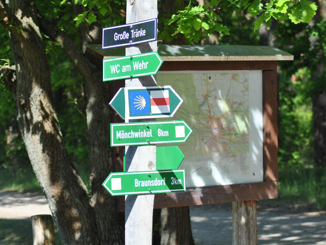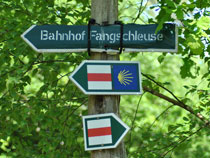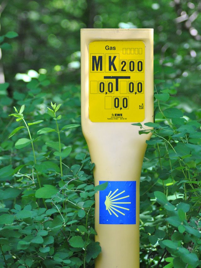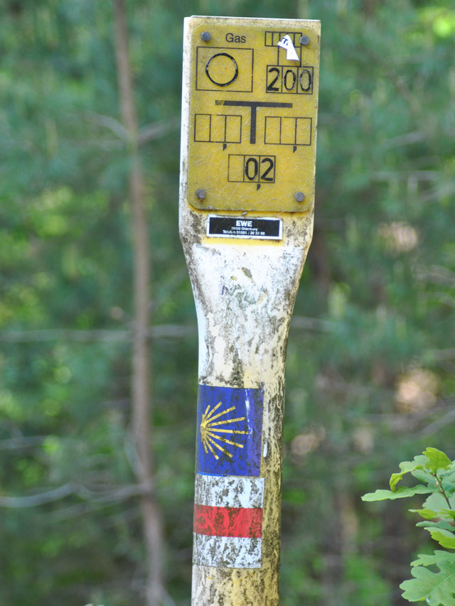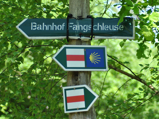 Der Jakobsweg verläuft also nicht wie erwartet weiter auf der Alten Poststraße, die zur Kreuzung von L 23 und L 38 führt, sondern nimmt eine Abkürzung in Richtung Fangschleuse. |