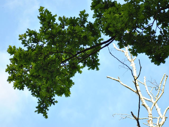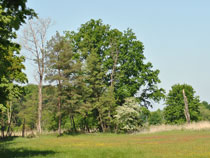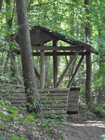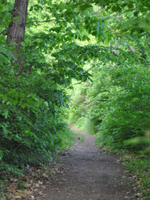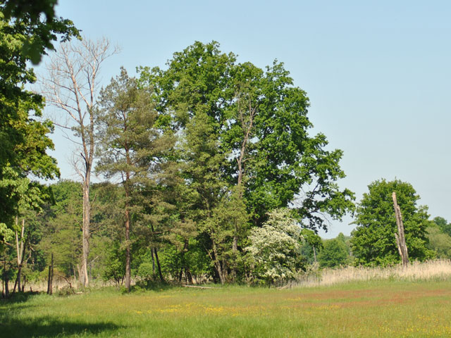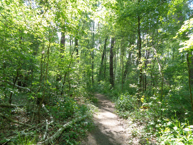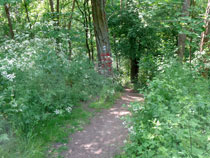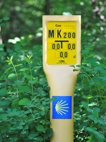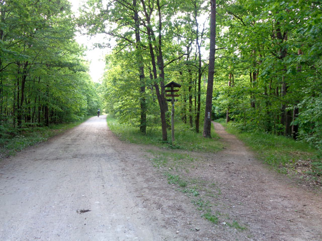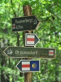 | Nach 2/3 der Strecke führt der Weg wieder über eine breite Schneise, die für Ferngasleitungen in den Wald geschlagen wurde. Die vom Strom konnte man wohl nicht mitnutzen ... | ![]() |