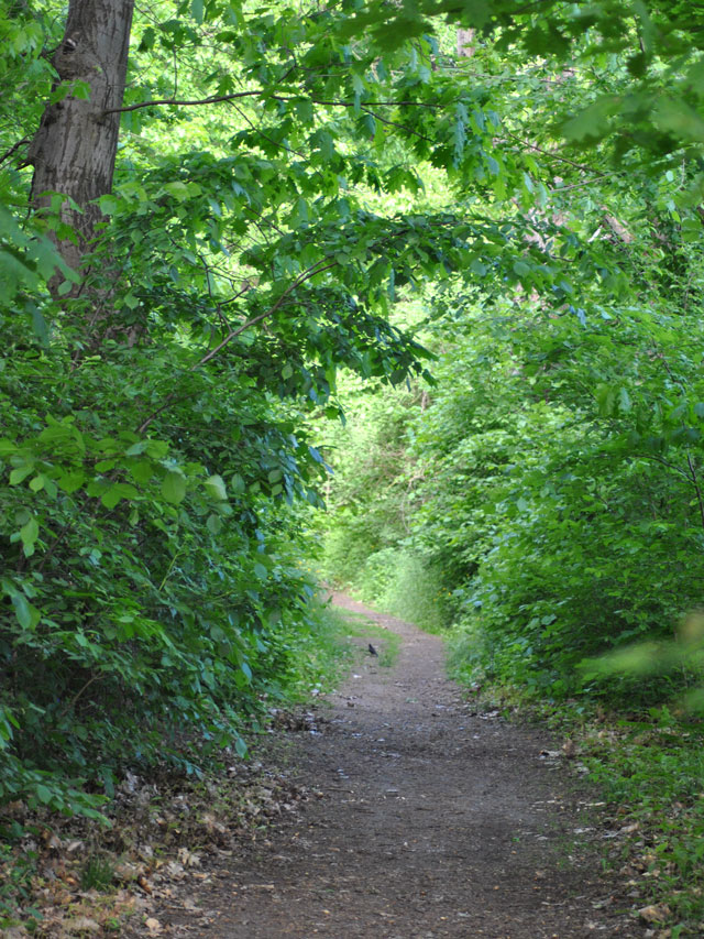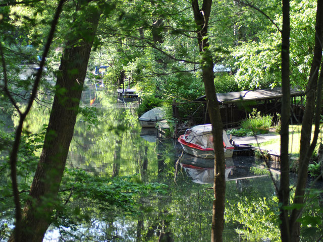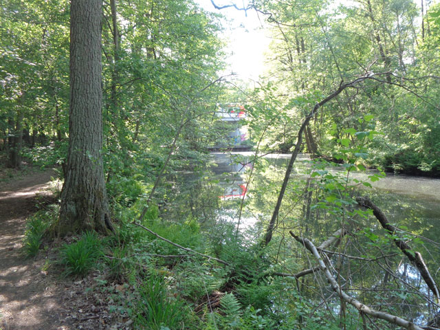 Nach vielleicht 500 Metern direkt am Wasser taucht der Weg ein in den Wald und verläuft nun mit ein paar Metern Abstand parallel zur Spree. |