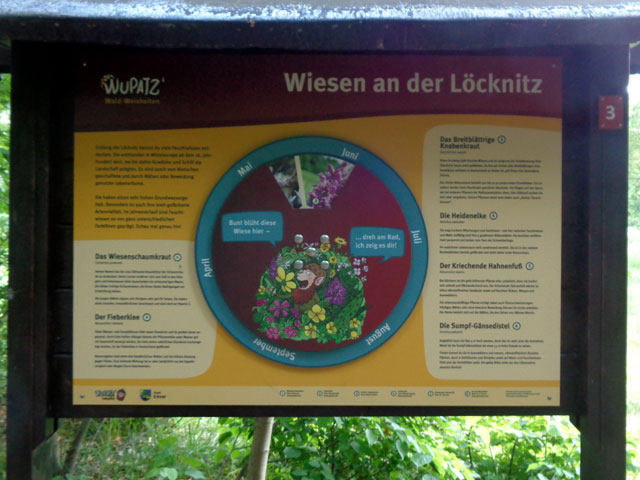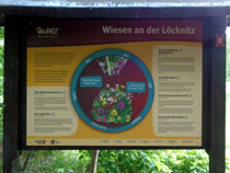 | Da, wo sich Alte und Neue Löcknitz vereinigen, sind die Löckwitzwiesen, die eine Bank und eine Infotafel wert sind. | ![]() |