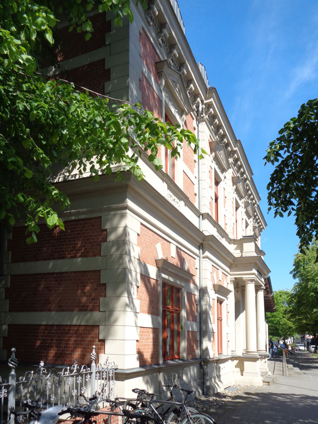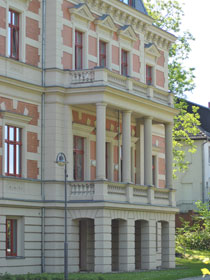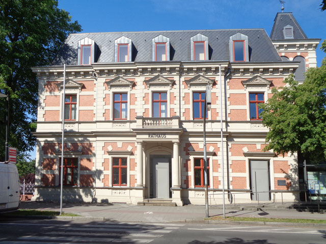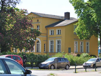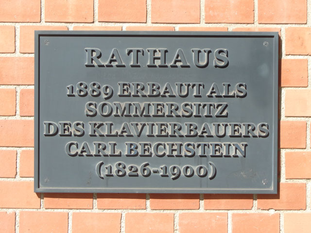 1937 übernahm die Gemeinde Erkner Bechsteins Villa und richtete darin ihr Rathaus ein. In einem zwischenzeitlich errichteten modernen Anbau befindet sich die Stadtbibliothek. |